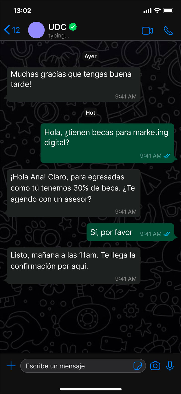 Atención a miles de estudiantes sin perder la cercanía. Admisiones, dudas y seguimiento, 24/7.